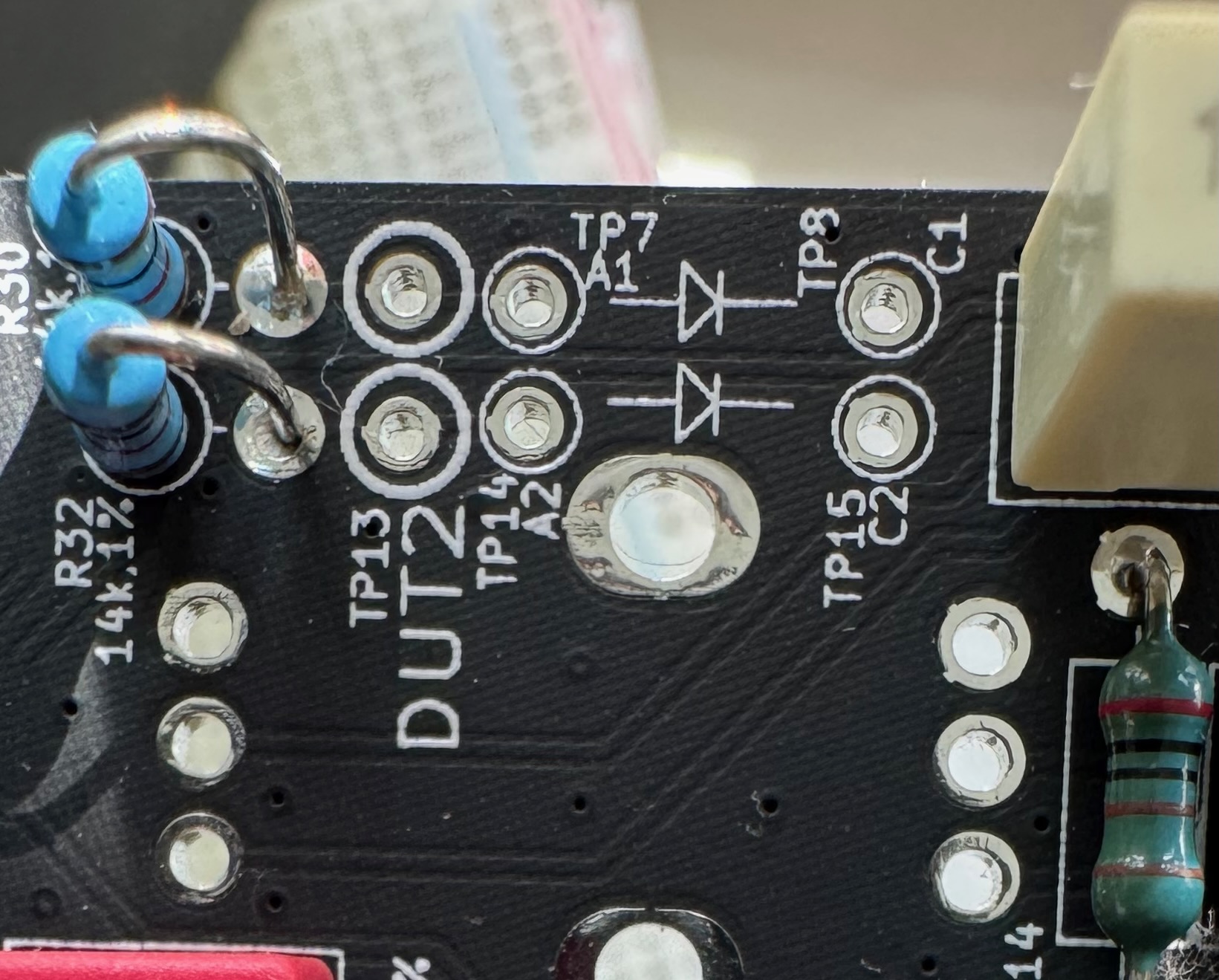 While I was building this PC board, I noticed something a bit strange at the top. There were two spaces for diodes, for which no extra diodes were supplied in the kit.