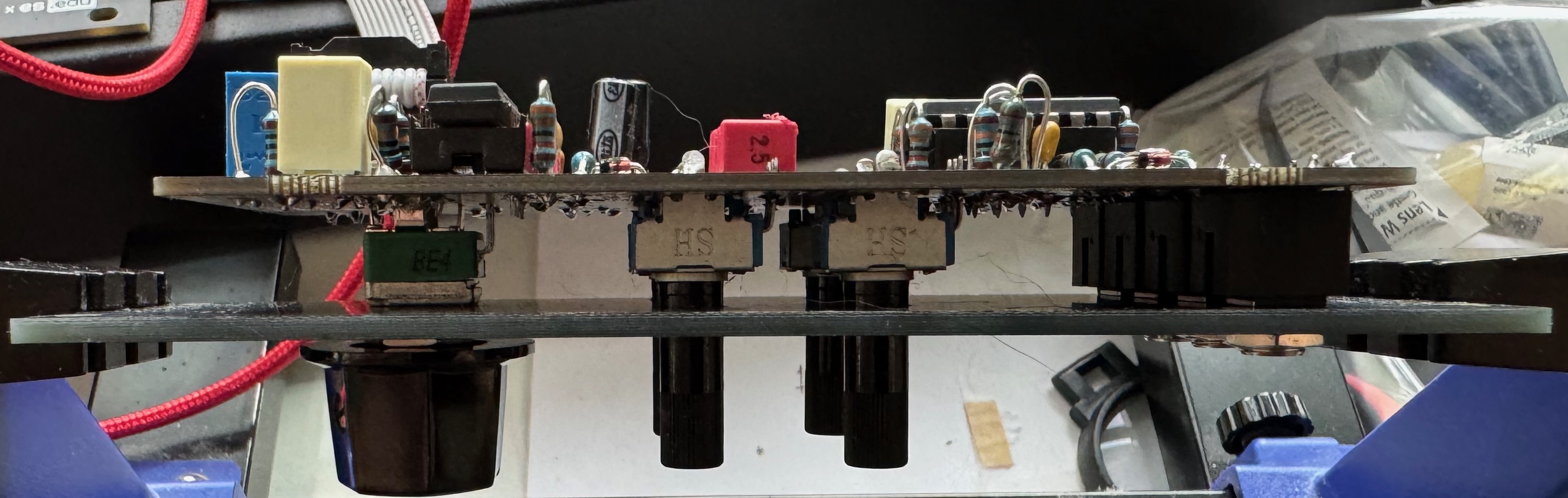 This turned out to be a fairly easy build. Everything worked correctly after initial assembly. I made one mistake, which was accidentally melting two of the capacitor housings a bit with my soldering iron (I work under a magnifiying lens, and this was out of sight!):